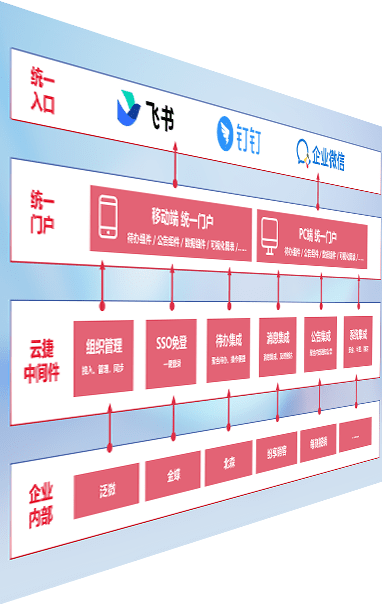 对协作平台提供支持服务,,支持企业应用与协作平台对接,,包含组织同步、、消息集成、、、待办集成等。。。支持目前主流的协作平台:钉钉、、、企微和飞书。。。